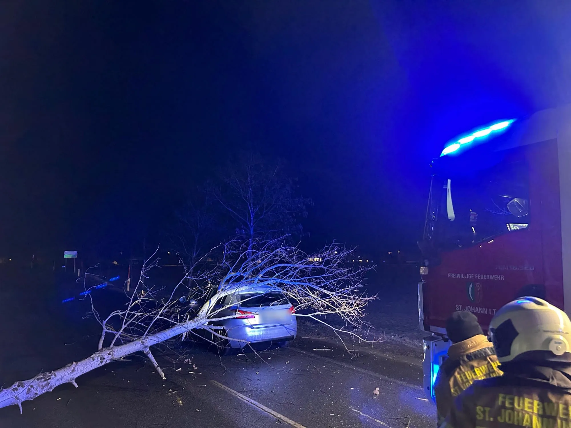 In der Nacht wurden wir von der Exekutive zu einem umgestürzten Baum auf der Hochkönigstraße nachalarmiert, welcher vermutlich aufgrund von Biberaktivität umstürzte und auf einem Fahrzeug lag.