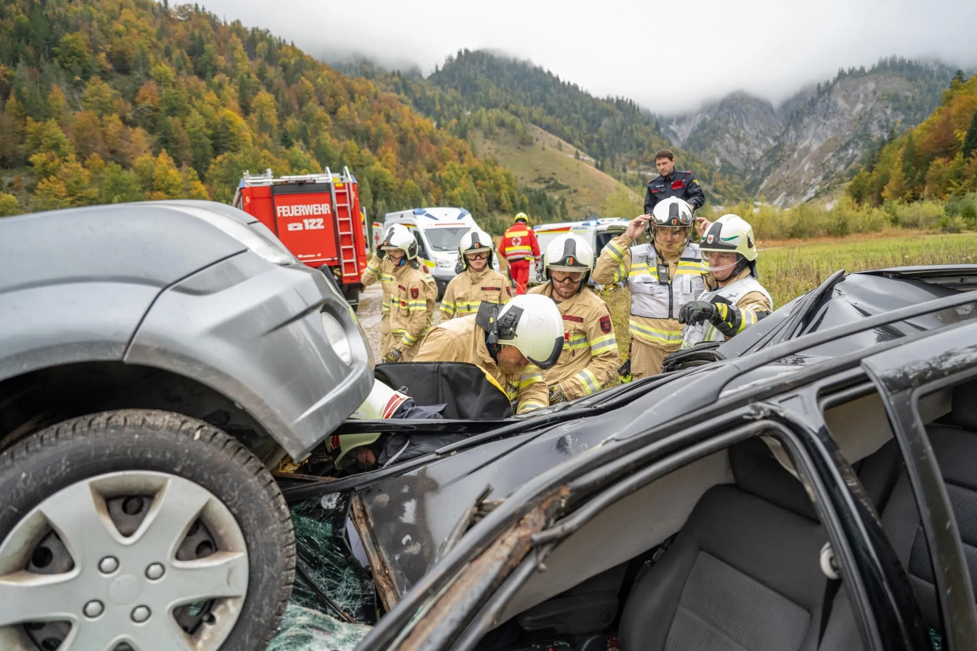 Die Feuerwehr St. Johann war mit dem Rüstlöschfahrzeug (RLF), dem Löschfahrzeug mit Bergeausrüstung (LFB), dem MTF für den Personentransport sowie dem LAST mit der Atemschutzfüllstation vor Ort.