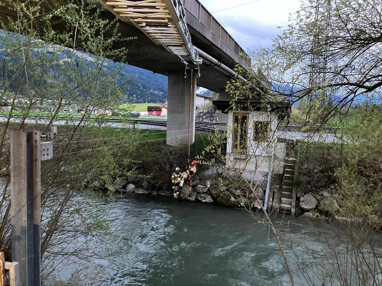 Hier ein paar Eindrücke der letzten Übung, bei der das sichere Anleitern sowie das Abseilen bei Fließgewässern trainiert wurde.